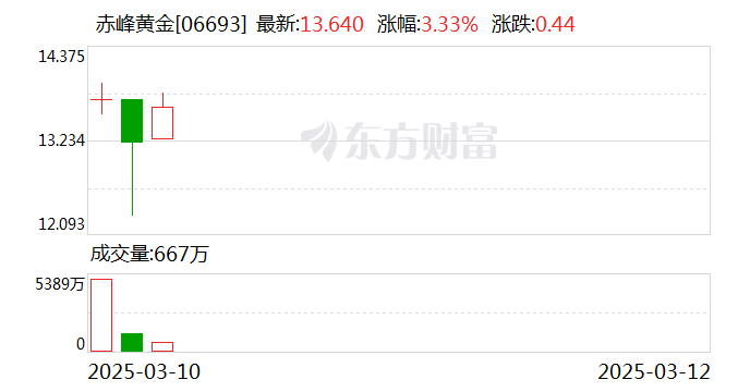 上市之后赤峰黄金市场表现并不亮眼,首日盘中即破发,3月12日在连续两日股价下跌后,股价收于13.64港元/股,仍位于发行价下方。赤峰黄金最新市值为368亿港元。