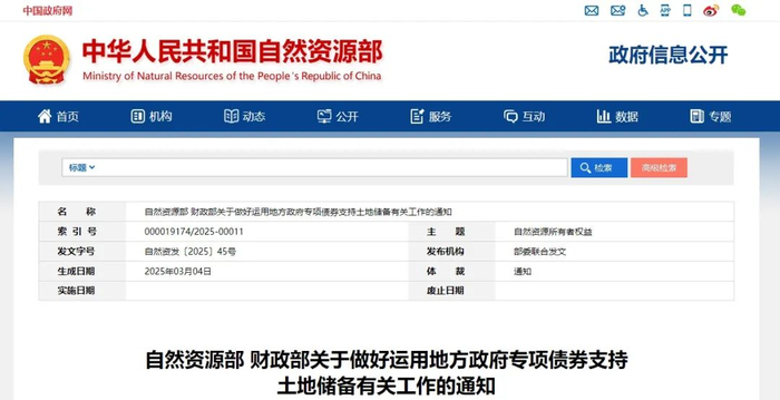 3月11日,自然资源部和财政部联合发布《关于做好运用地方政府专项债券支持土地储备有关工作的通知》,内容包括明确发债要求及资金使用主体、完善专项债申报审核流程、做好资金和收益的综合平衡、严格监督管理四个方面。