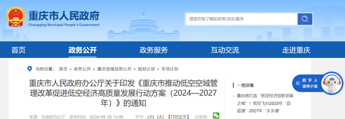 8、重庆市:《重庆市推动低空空域管理改革促进低空经济高质量发展行动方案(2024—2027年)》