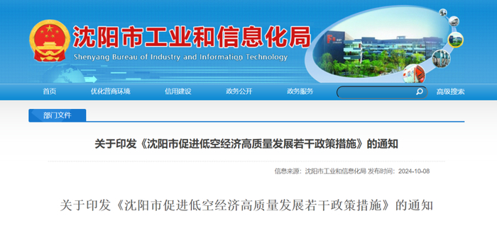 2024年10月8日,沈阳市工业和信息化局印发《沈阳市促进低空经济高质量发展若干政策措施》。围绕促进低空经济产业发展,沈阳市从五个方面提出了12条政策措施: