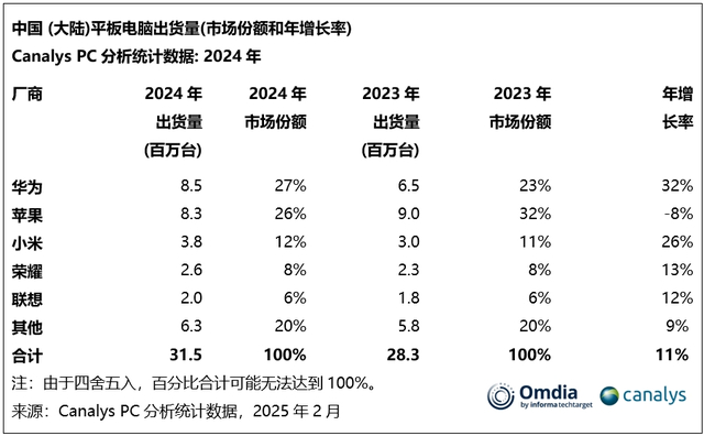 平板电脑市场预计将实现1%的温和增长,2025年出货量预计达到3190万台。在政府补贴的推动下,平板电脑的消费市场预计将同比增长3%。