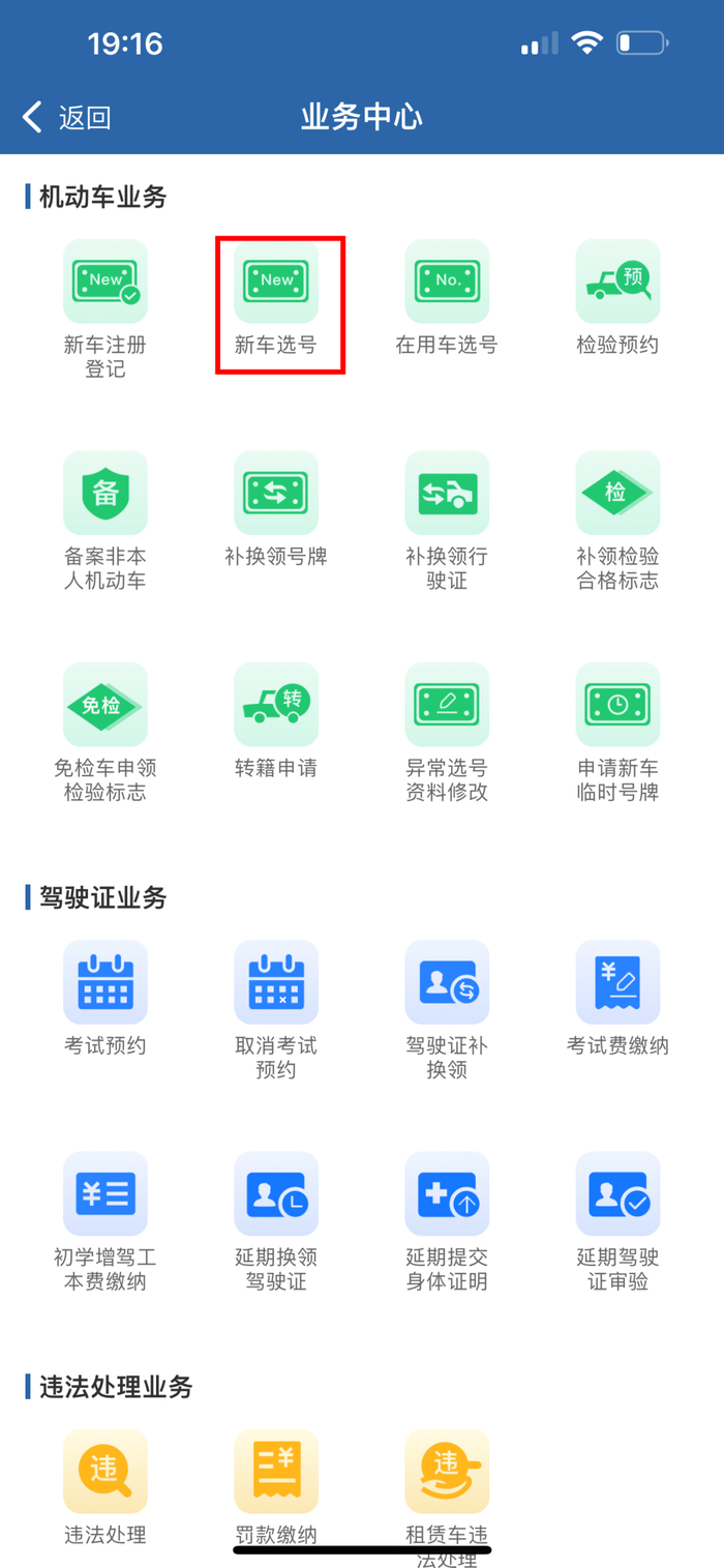 第一步:选择【新车选号】