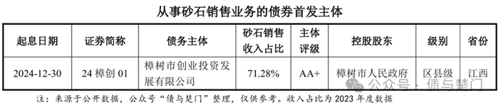 还有其他发债主体(非首发主体)从事砂石销售业务,如嵊州市交通投资发展集团有限公司、益阳市城市建设投资运营集团有限责任公司等。