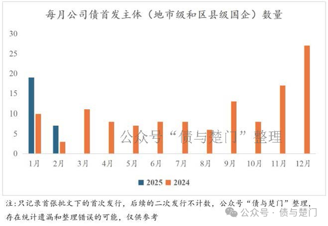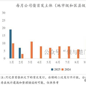 因目前地市和区县级公司债首发主体(首次发行公司债且募集资金用于新增用途)大部分为产投主体,所以可以用每月公司债首发主体(地市和区县级)数量来大致考察产投主体的首发情况,可以看出,从2024年三季度开始,产投首发主体的数量有了明显的增加。