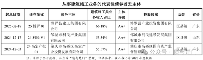 接下来,本文将详细阐述首发产投主体出现次数较多的产业类业务及代表性主体,重点介绍建筑施工、贸易业务、人力资源、安保/保安服务、砂石销售等业务,股权投资、房屋租赁、园区运营、文旅业务和公用事业类等比较常见的产业类业务,大家已比较熟悉,且相关首发主体众多,本文末仅对其做简要概述。