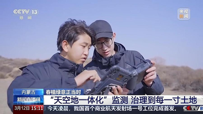 为了更精准地评估治理效果,鄂尔多斯市林草部门采用了“天空地一体化”监测体系。在工作人员的手持电脑上,卫星图像、无人机监测数据和地面实时位置一目了然。通过这些数据,工作人员能够精准调整治沙策略,优化种植布局,确保每一寸沙地都能得到最有效的治理。