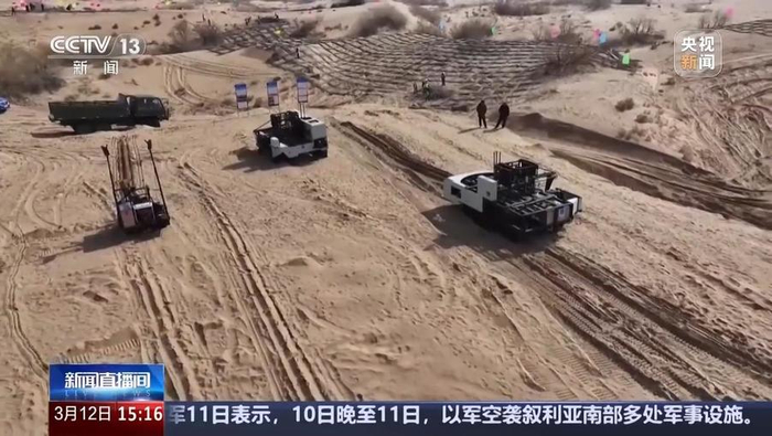 在治沙现场,无人植树机器人和半自动种植车,成为“治沙利器”。