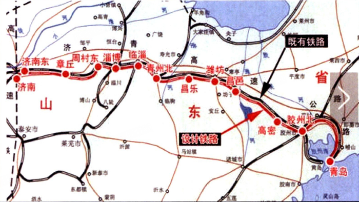 胶济客专于2008年12月贯通运营。它是在老胶济铁路(1904年建成通车[19])提速改造的基础上,采取部分新建、部分利用老胶济铁路改造段而建成的线路。[20]