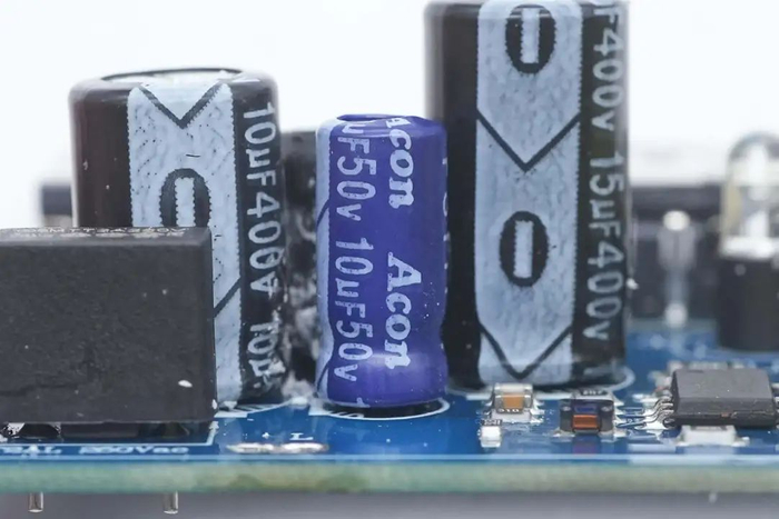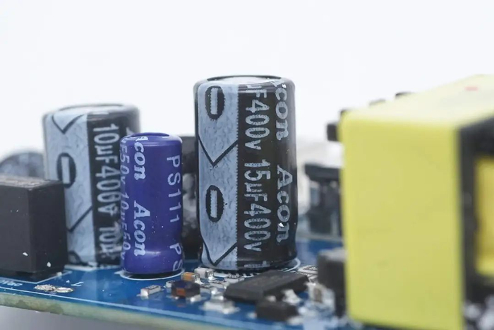 两颗高压滤波电解电容来自Acon新中元,这颗规格为400V15μF。