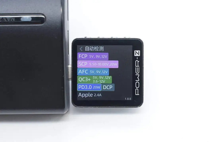 使用KM003C测得USB-C口支持FCP、SCP、AFC、QC3+、PD3.0、DCP、Apple 2.4A充电协议。