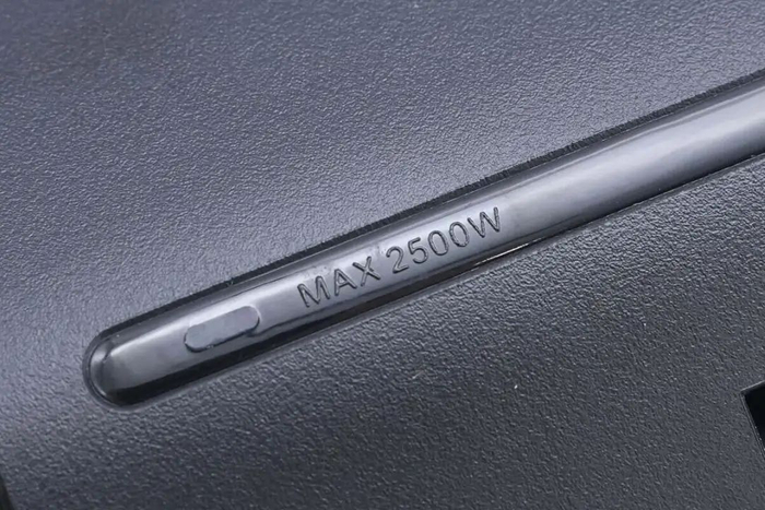 另一端设计MAX 2500W字样表明最大承载功率,同时还配有通电指示灯。