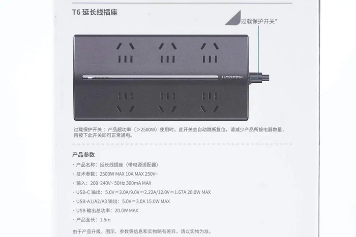 近期知名品牌UGREEN绿联推出了快充插座新品——T6斜面排插,这款新品不仅孔位多,而且同样也支持20W PD快充,能够提供用户接线即快充的良好使用体验。