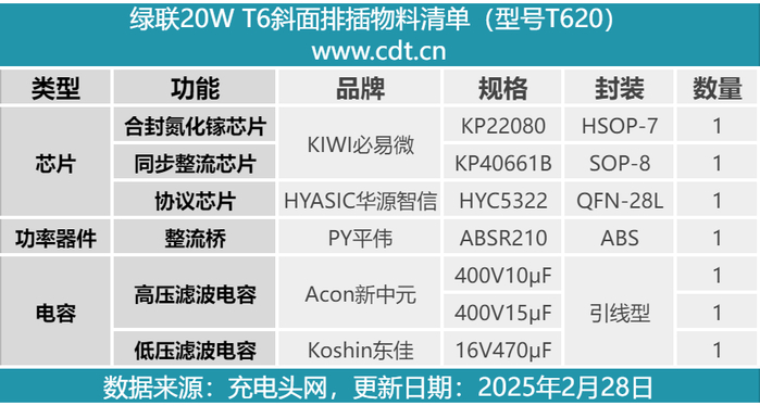 最后附上绿联T6斜面排插的核心器件清单,方便大家查阅。