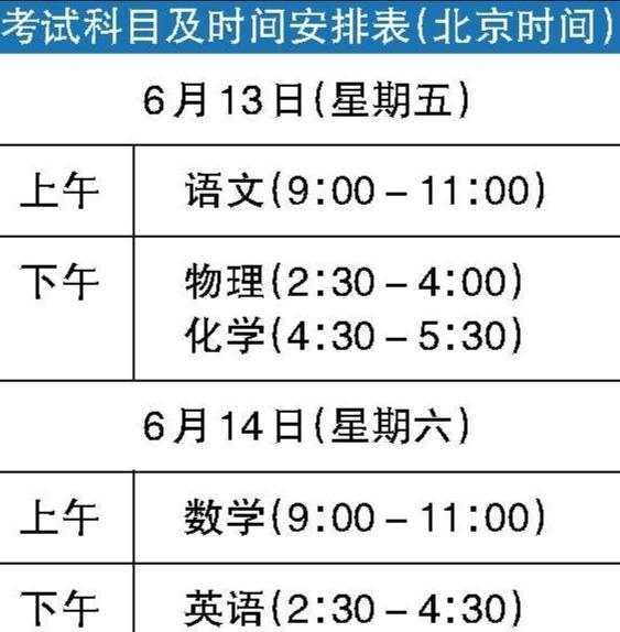 6月:语文、数学、英语、物理和化学5科统一考试(中考),时间为6月13日和14日