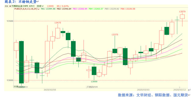 3月11日沪镍主力合约结算价格为132620.0元/吨,较上月同期增加5.66%。不锈钢主力合约结算价格为13470.0元/吨,较上月同期增加1.81%。印尼镍矿扰动,市场忧虑情绪升温,需求对行情驱动较弱。