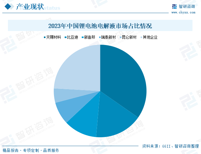 从竞争格局来看,2023年在我国锂电池电解液出货量排名前十的企业中,天赐材料以接近40万吨的出货量排名第一,占国内锂电池电解液整体市场份额高达34.7%;出货量同比增速最快的企业为比亚迪,其全年出货量同比增长率高达86.3%,占国内锂电池电解液整体市场份额已提升至16.7%。此外,新宙邦、瑞泰新材和昆仑新材的电解液出货量占全国电解液市场出货量的比例分别为11.6%、7.9%和5%。