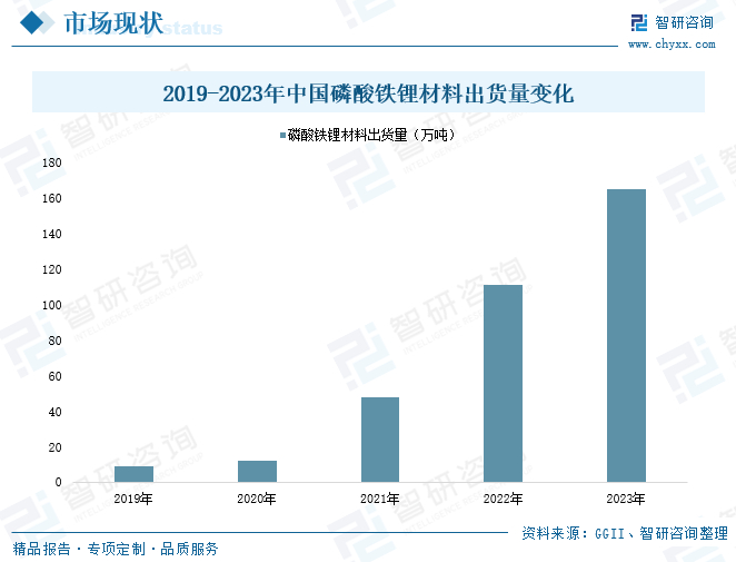 从细分产品市场看,磷酸铁锂是目前锂电池生产应用占比最多的正极材料。近年来,受储能与动力铁锂电池出货量带动,我国磷酸铁锂正极材料出货量快速增长。据统计,2023年,我国磷酸铁锂正极材料在整个正极材料中的市场份额已经达到66%,全国磷酸铁锂正极材料出货量达到165万吨,较上一年增长了48.65%。从企业来看,国内磷酸铁锂材料生产重点企业有湖南裕能、德方纳米、万润能源、龙蟠科技、融通高科、友山科技、国轩高科等。其中,湖南裕磷酸铁锂正极材料出货量自2020年以来连续三年位居全国第一。