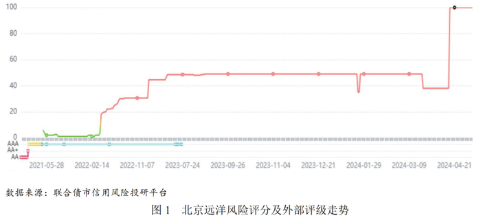 2024年1月21日,由于流动性紧张,远洋控股集团(中国)有限公司(2025年2月7日改名为北京远洋控股集团有限公司)(以下简称“北京远洋”)未能按时兑付30亿“21远洋控股PPN001”本息,构成实质违约。联合风险预警模型提前650天于2022年4月11日给予北京远洋红色预警,有效提示其违约风险。