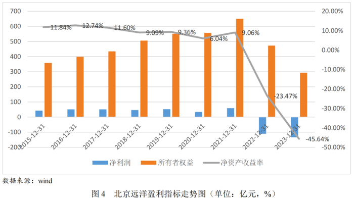 2022年以来,根据公开信息显示8,北京远洋、股东远洋集团及关联企业远洋资本发生多次负面舆情,如纳入被执行人名单、业绩下滑9、穆迪下调远洋集团级别10、停发薪酬11、债务纠纷及诉讼12、远洋集团出售优质资产募资13、远洋资本控股有限公司为借款人的贷款逾期14等,侧面暴露出房地产行业的景气度下行和经营不及预期,企业资金链紧张、公司治理混乱、关联公司经营不善等问题。