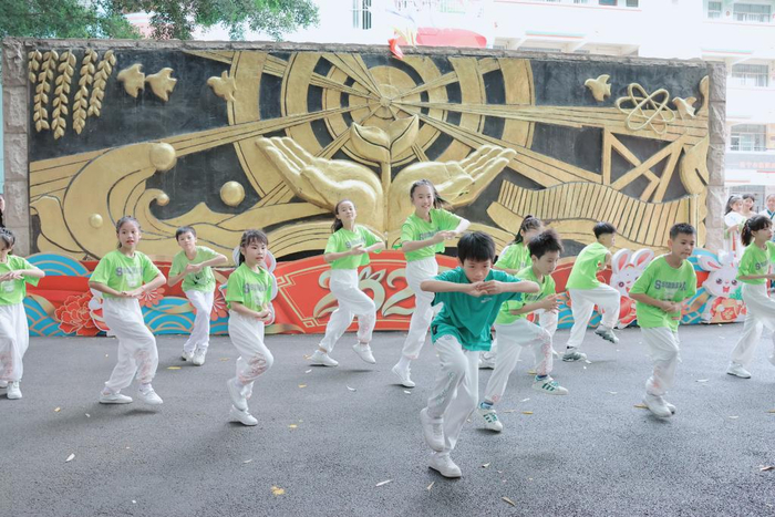 符隽熙(前中)在校园活动中领舞。