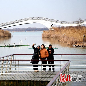 2月22日,游客在衡水湖畔赏湖景、观候鸟。 河北日报记者焦磊摄