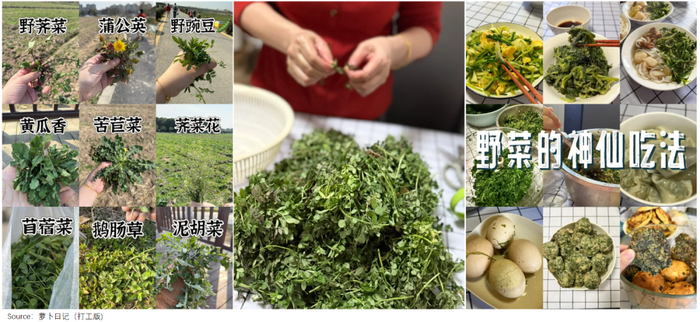 这不是她自我鸡血,而是真的解压,“不用费脑子,溜达半天就能收获一堆野菜,既玩了又能做好吃的,让人总期待下一次,看工作日都‘眉清目秀’了。”