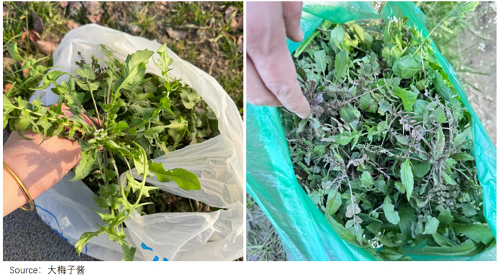 甚至,几度因为太羞耻,试图劝阻父母:“超市的野菜也就十几块一斤,何必把自己搞得又脏又累”“万一撒有农药怎么办”……在她眼里,挖野菜跟“没苦硬吃”之间可以划个约等号。