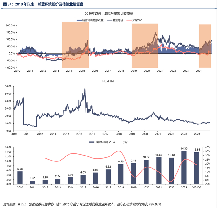 2010-2024年,瀚蓝环境股价涨幅93.6%、相较于沪深300指数超额收益率为82.3%。回顾过去,公司经历了三轮比较大幅的股价上涨,跑赢大盘,我们对其原因进行复盘: