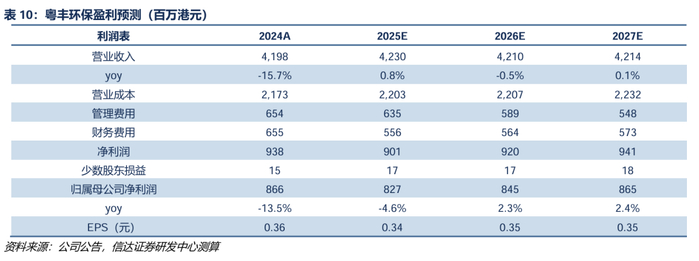 粤丰环保经营预测: