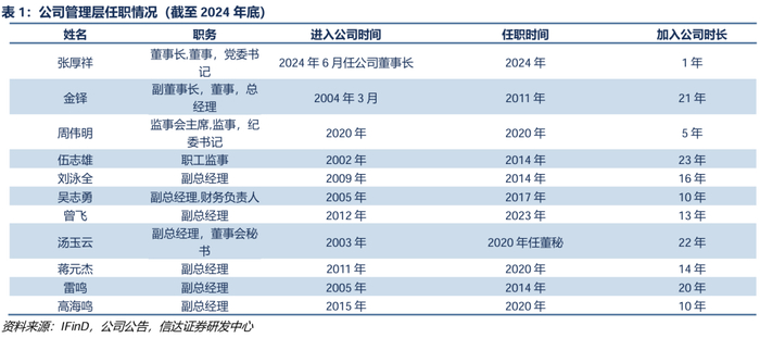 管理团队人员变动小,核心成员多由内部晋升,公司治理的连续性与稳定性强。公司的核心管理层进入公司时间较早,多数入职超过10年,继而保证高管层对公司业务及战略规划有充分的理解。近10年来,总经理、财务负责人等核心高管未发生重大变动,且5年来,多位高管由内部培养晋升,保障公司的长远战略规划得到有效执行,公司治理稳定连续。