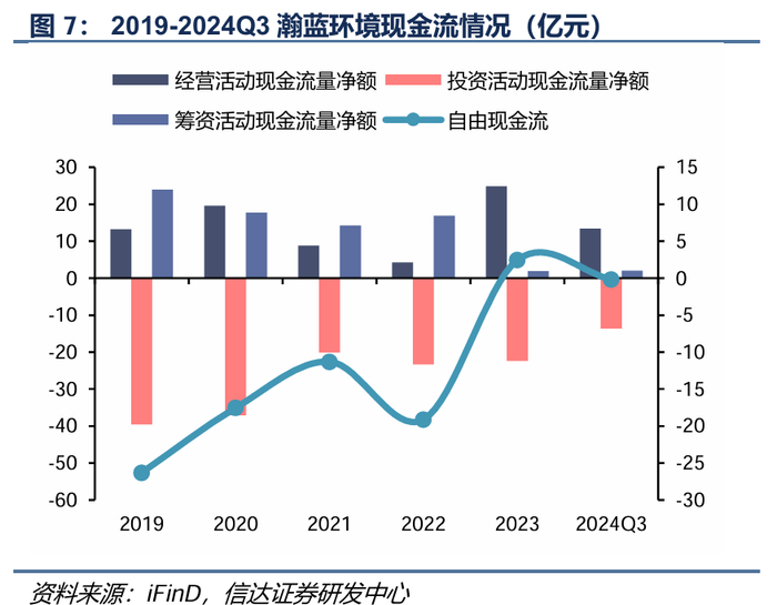 瀚蓝环境与粤丰环保经营性现金流较为充裕,还本付息压力整体可控。剔除会计准则14号文的影响,2023年瀚蓝环境经营活动产生的现金流量净额为27.38亿元,粤丰环保经营活动产生的现金流量净额为18.33亿元,合计现金净流入45.71亿元。同时,两家公司已经进入成熟运营期,新增项目支出规模有限,现金流具备偿还贷款能力。