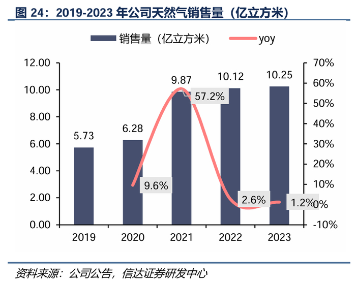 2、能源板块:假设2024-2026年天然气销售量每年1%的增长,总量保持在约10亿立方米。伴随价格机制理顺,天然气毛差有望趋于稳定,毛利率稳定在10%-11%。