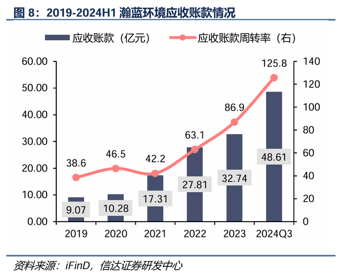 公司加大力度解决应收回款问题补充现金流,2024年已解决存量应收24亿。2019-2024Q3公司应收账款规模逐年扩大,达到存量的125.8亿元,尤其2023年以来应收加速累加,应收账款周转率超过4个月。从应收结构来看,政府客户的应收款占比达到71%,且有明显增加趋势,主要是来自应收污水处理费、垃圾处理费等;应收可再生能源电费补贴占比约为20%。截至2024年底,公司实际解决24亿应收回款,超过计划的20亿应收回款。我们预计伴随地方化债进程推进,政府债务压力有望出现缓和,企业端应收回款或呈现积极回收趋势。