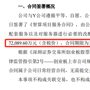 3月12日晚,宏景科技宣布,与Y公司签署总金额为7.21亿元的《智算项目服务合同》,合同期限为五年。合同内容包括公司向Y公司提供服务器、组网配套服务以及对服务器进行必要的改配服务,并提供算力服务。