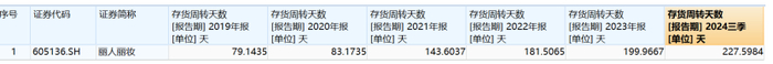 同时,存货周转天数从2020年的83天延长至2024年前三季度的227天。