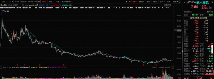 然而,自2020年10月股价冲上54.69元巅峰后,丽人丽妆的资本神话急转直下。