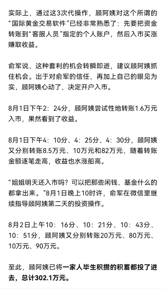 几乎骗走了顾阿姨一家人全部积蓄,