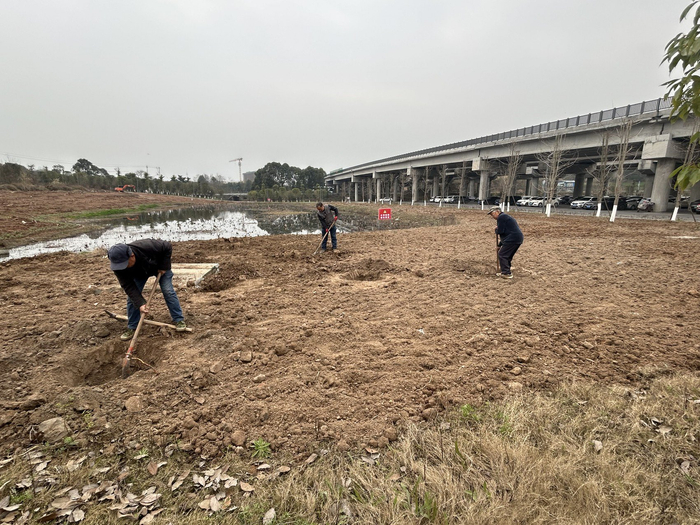 规划植树区域,工人正在进行植树前的翻土工作。陈丽霏 摄