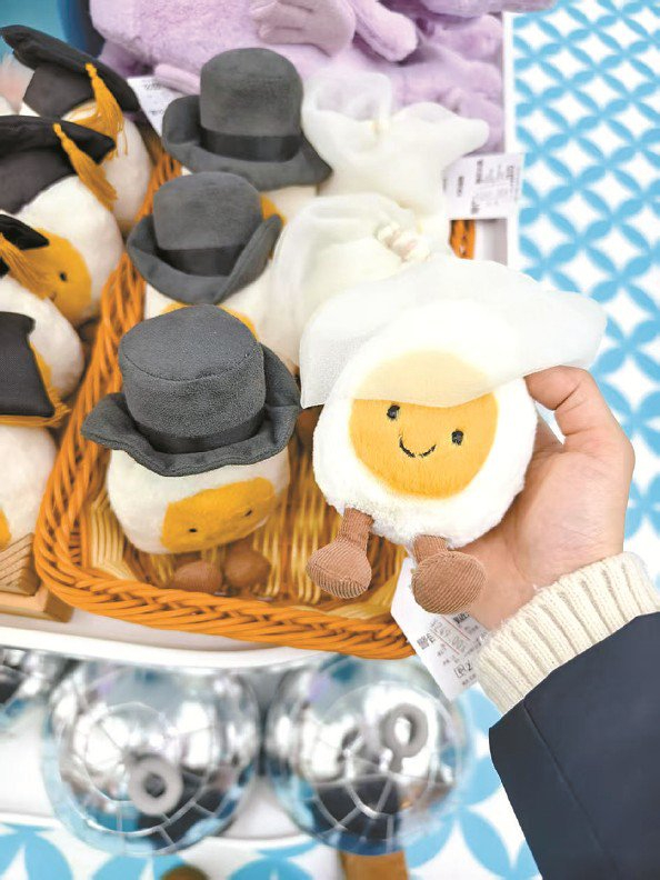 一个不到手掌大的“新郎水煮蛋”毛绒玩偶售价225元,如果再买一只“新娘水煮蛋”凑成一对,就要460元(见左上图 闫锦 摄)。别看很多Jellycat的毛绒玩偶小小的、萌萌的,价格却很“辣手”,被称为“玩偶界爱马仕”。即便如此,热门款式经常一到货就被抢购一空。在瑞虹天地太阳宫的Jellycat授权店,店员告诉记者,该店已经建立了15个“到货通知”的微信群,加起来有五六千人,其中不乏四五十岁的中年人。