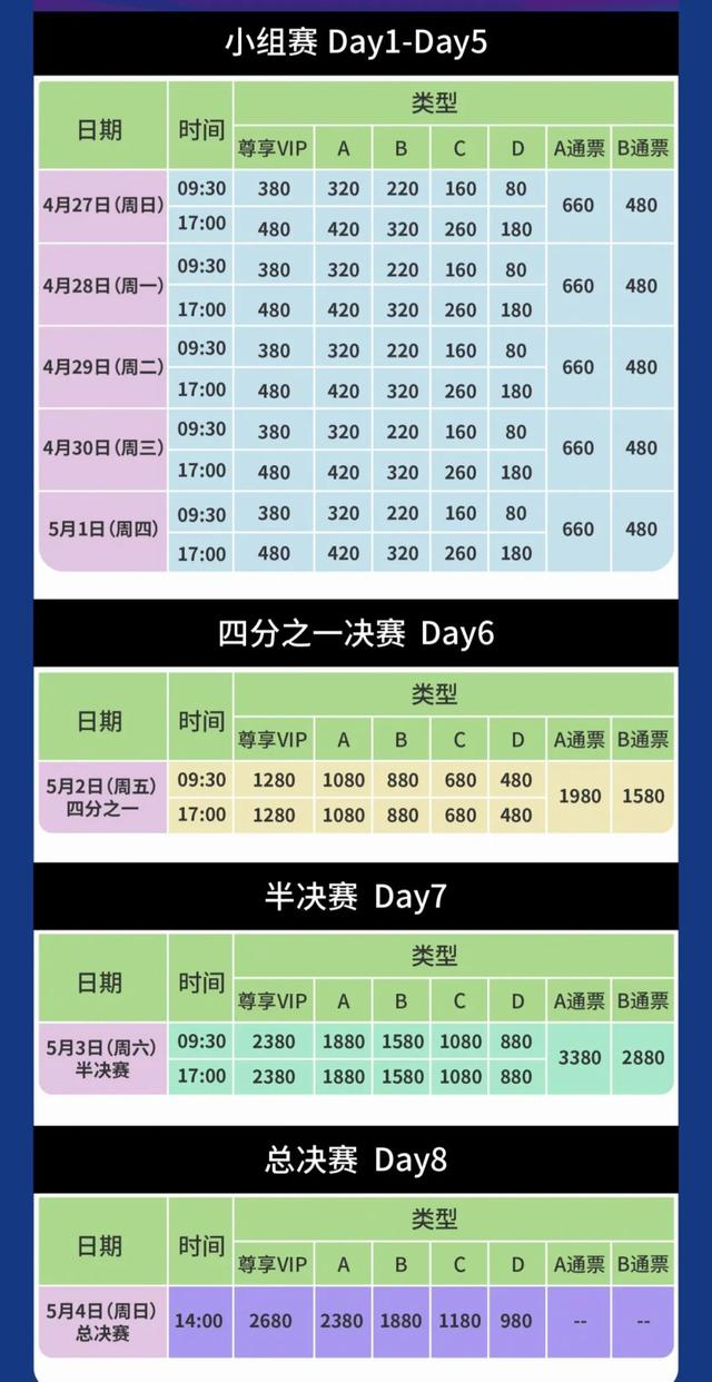 8天赛期票价同步公布