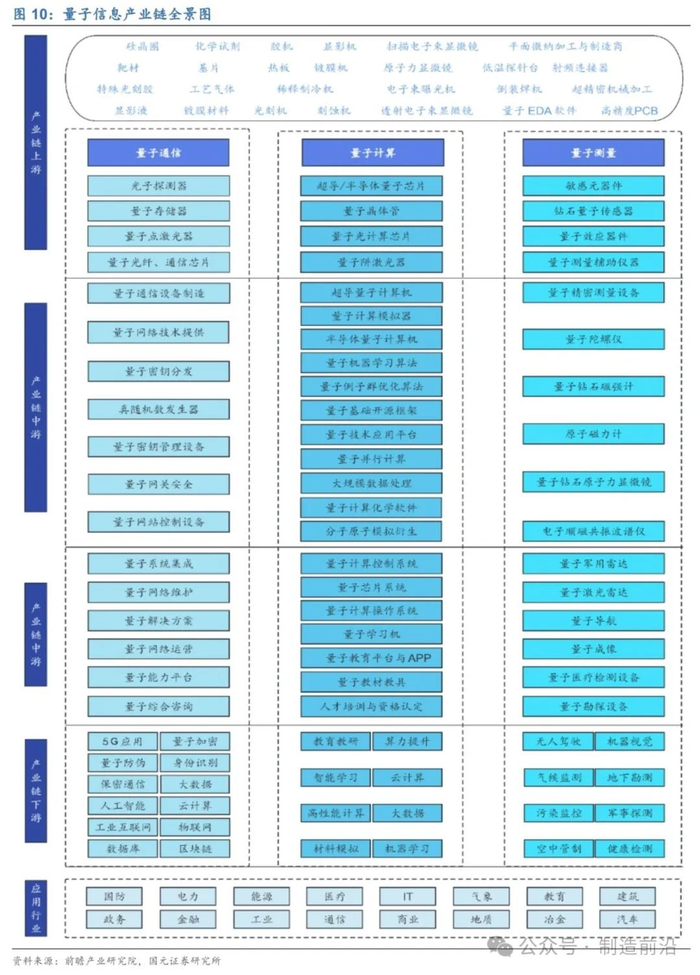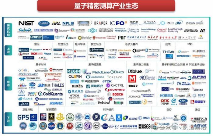 中游则是技术研发和设备制造的核心环节,涉及量子精密测量技术、量子传感技术量子信息处理技术等领域的研发和创新,以及量子时钟、量子重力仪、量子磁力计等高精度设备的制造;