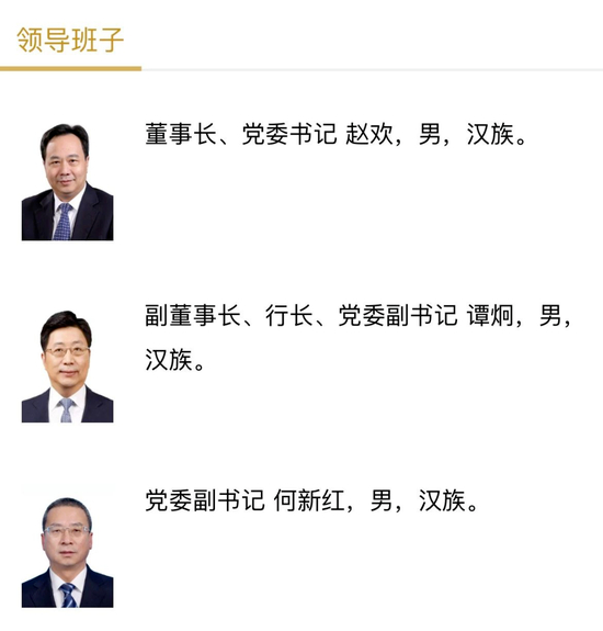 目前,国开行官网领导班子共成9名员,包括:董事长、党委书记赵欢,副董事长、行长、党委副书记谭炯,党委副书记何新红,驻国开行纪检监察组组长、党委委员宋先平,副行长、党委委员王卫东、谢泰峰、王克冰、陈梦蒙,党委委员王鹏。