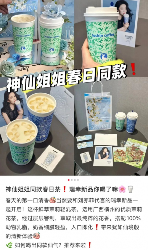 厚积薄发,一鸣惊人。2024年8月5日,瑞幸重磅推出首款轻乳茶产品——轻轻茉莉·轻乳茶,随即又在8月11日官宣刘亦菲为茶饮首席推荐官,并开启“上午咖啡下午茶——送你1亿杯9.9元下午茶”活动。该产品上市首月杯量便突破4400万杯,让“上午咖啡下午茶”迅速成为消费者所推崇的精致生活方式,在成为瑞幸年报中新晋爆款的同时,更是成为整个茶饮市场不折不扣的年度顶流,