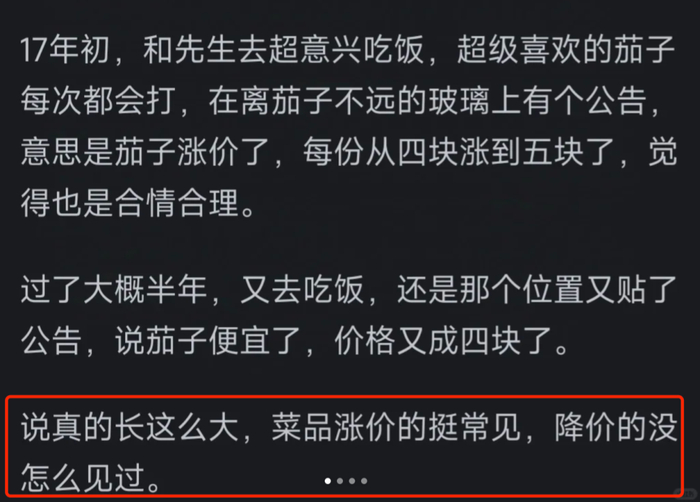 但这不是终点,有资深吃货发现,2025年了,居然还有餐馆会跟着原料供应周期,同步降价。