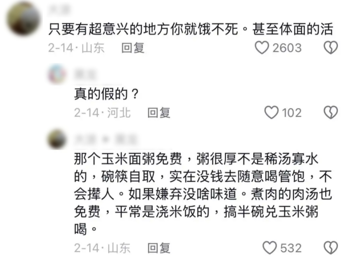 不仅如此,这里的玉米粥并未因免费而糊弄。无论走进哪个店,都是一样的香甜,稠糊,无限供应。