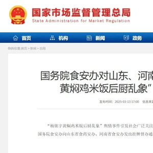 “杨铭宇黄焖鸡米饭后厨乱象”舆情事件引发社会广泛关注,为切实维护广大消费者合法权益,3月13日,国务院食安办向山东省食药安办、河南省食安办发出挂牌督办通知书,对两地核查处置工作实行挂牌督办。