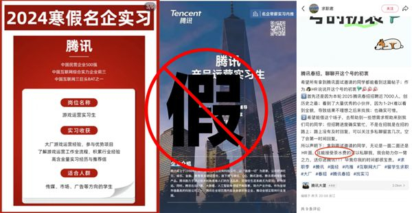 腾讯一直关注此类情况,并实时跟进进展,2025实习生招聘启动后,不同的求职骗局又开始出现。
