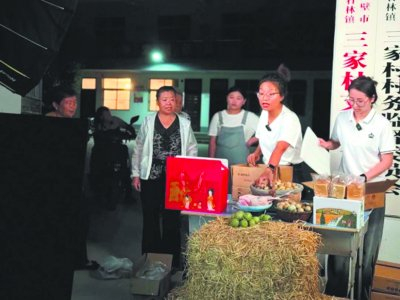 张桂芳在直播间带货三家村农产品。