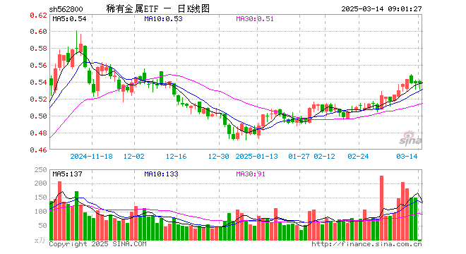 3月13日,稀有金属ETF(562800)涨0.00%,成交额8054.74万元。当日份额减少3645.00万份,最新份额为21.03亿份,近20个交易日份额增加1.13亿份。最新资产净值计算值为11.31亿元。