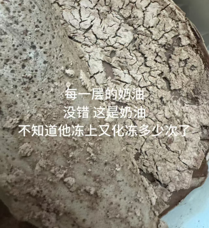 2024年9月18日上午,李女士在盒马App下单“巧克力千层蛋糕”,中午打开后发现千层蛋糕被冻成“一坨”,奶油呈斑块状。